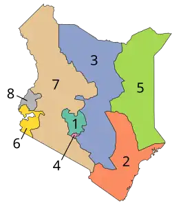 | 6 | Nyanza | 12 507 | 4 889 700 | Kisumu | |