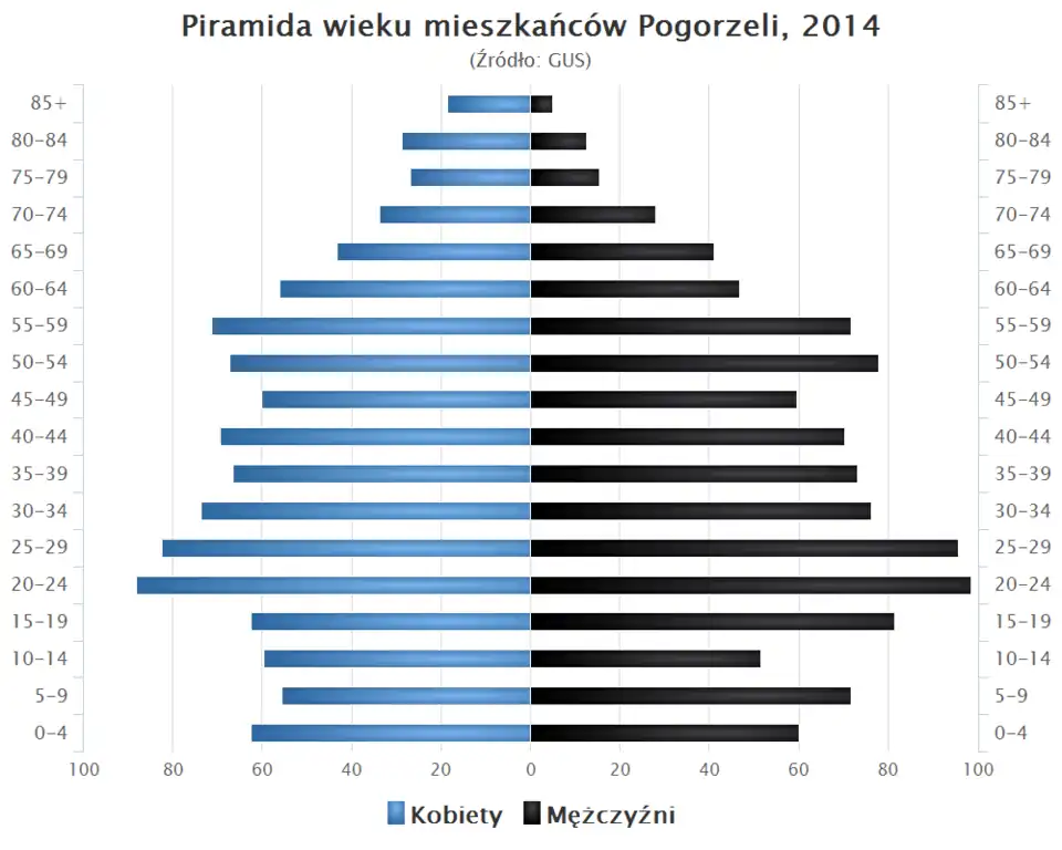 - Piramida wieku mieszkańców Pogorzeli w 2014 roku[2].