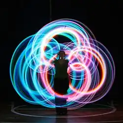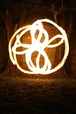 Obecnie tancerze wykonują ten specyficzny taniec przy akompaniamencie bębnów i innych instrumentów perkusyjnych. Najbardziej efektowną odmianą jest taniec z ogniem. Końcówki (z niepalnego materiału jak dżins czy kevlar) zostają nasączone łatwopalną substancją i podpalone. Ze względu na szybkie przemieszczanie się końcówki uzyskuje się efekt wizualny smug ognia otaczających i krążących wokół tancerza.