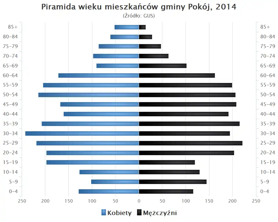 - Piramida wieku mieszkańców gminy Pokój w 2014 roku[1].
