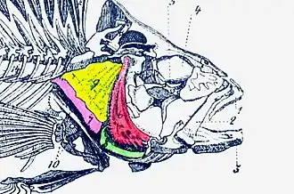Pokrywa skrzelowa składa się z następujących płytek kostnych[1][5][6][7]: