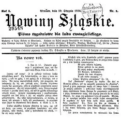 19 stycznia 1884 ukazał się we Wrocławiu pierwszy numer polskojęzycznego tygodnika pt. Nowiny Szląskie, który wydawany był do roku 1888 przez Jerzego Badurę[47].