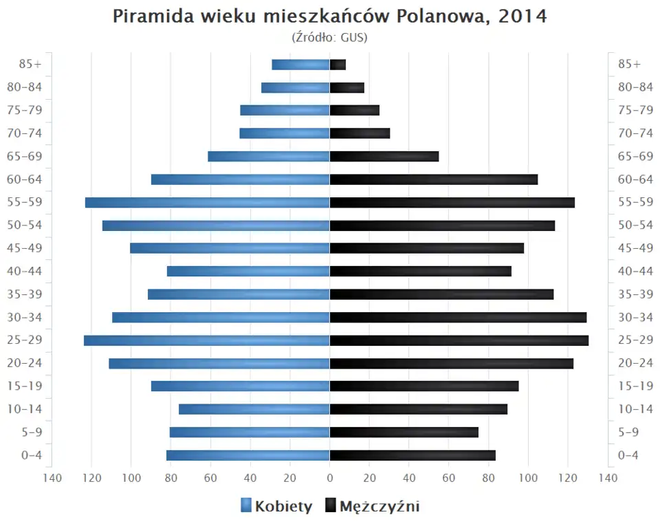 - Piramida wieku mieszkańców Polanowa w 2014 roku[1].