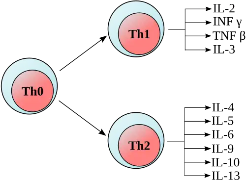 Czynnikami, które doprowadzają do powstania limfocytów Th1 są IFN-γ oraz Interleukina 12, podczas gdy Interleukina 4 kieruje różnicowanie w stronę limfocytów Th2.