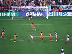 Wewnątrz każdego pola karnego wyznacza się punkt karny w odległości 11 m (ściślej: 10,97 m = 12 jardów) od punktu środkowego pomiędzy słupkami bramkowymi (3,66 m (4 jardy) od słupka) i w równej odległości od nich. Łuk koła o promieniu 9,15 (10 jardów), którego środkiem jest punkt karny wyznacza się na zewnątrz pola karnego.