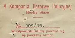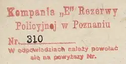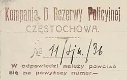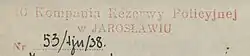 - ↑ Pismo nr 53/tjn./38 dowódcy 10 Kompanii Rezerwy Policyjnej z 9 grudnia 1938 (s. 4, skan 79). NAC. [dostęp 2021-04-12].