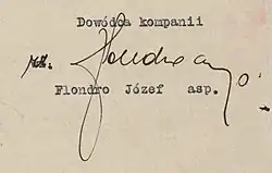 - ↑ 6 Kompania Rezerwy Policyjnej wyjechała 30 czerwca 1939 ze Lwowa do Mostów Wielkich celem pełnienia służby wartowniczej w Szkole Szeregowych PP, w czasie przerwy między XVII a XVIII kursem. Stan kompanii 1 oficer, 10 szeregowych, 52 kandydatów kontraktowych[36]. Dowódcą kompanii był asp./podkom. PP Józef Flondro ur. 27 lutego 1894 w Tarnopolu, w rodzinie Jakuba. 3 listopada 1926 Prezydent RP mianował go podporucznikiem ze starszeństwem z 1 lipca 1925 i 459. lokatą w korpusie oficerów rezerwy piechoty[37], a minister spraw wojskowych wcielił do 30 pp w Warszawie[38].