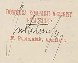 - ↑ Pismo nr V-381/39 p.o. naczelnika Wydziału V KG PP z 3 lipca 1939. Narodowe Archiwum Cyfrowe. [dostęp 2021-04-08].