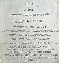 - ↑ M. Talutis. Vyskupas „piliakalnis“ – Augustinas Polikarpas Marciejevskis. „Terra Jatwezenorum. Istorijos paveldo metraštis”. 8, 1 dalis, s. 99–100, 2016. Punsko „Aušros“ leidykla. ISSN 2080-7589. [dostęp 2023-01-18]. (lit.).