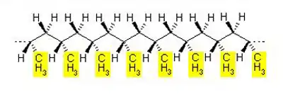 Łańcuch węglowy polipropylenu jest chiralny, a ułożenie atomów H i grup CH3 przy każdym asymetrycznym atomie węgla jest przypadkowe, jeśli polimer ten jest otrzymywany w sposób niekontrolowany stereochemicznie[2]. Produkt taki jest lepki, amorficzny i prawie bezużyteczny[2].