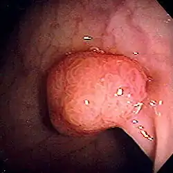 - polipa gruczolakowatego (polypus adenomatosus albo adenoma polyposum)