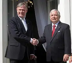- ↑ Ryszard Zięba: Główne kierunki polityki zagranicznej Polski po zimnej wojnie. Wyd. 1. Warszawa: Wydawnictwa Akademickie i Profesjonalne, 2010, s. 140. ISBN 978-83-60807-13-2.