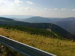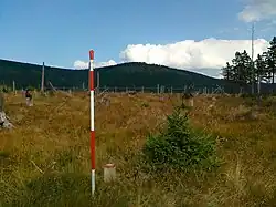 ![]() Widok ze stoku góry Klínová hora na górę Polom (na pierwszym planie, z lewej szczyt Černá stráň–SSZ) (2017 rok) | |