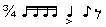 Taniec utrzymywany jest w metrum trójdzielnym, tempie umiarkowanym i rytmice ósemkowej z dwiema szesnastkami na „i” pierwszej miary; korowód par, poruszających się krokiem dostojnego chodu po liniach krętych i prostych dobieranych przez prowadzącego.