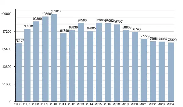| 2024 | 73 320 | ? | –1,4% |