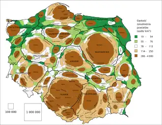 Powierzchnia administracyjna Polski wynosi 313 933 km²[b][4], co daje jej 69. miejsce na świecie[h][12] i 9. w Europie. Zamieszkana przez 37 563 071 osób (30 VI 2024 r.)[5], zajmuje pod względem liczby ludności 38. miejsce na świecie (wg danych za 2020 rok)[13], a 5. w Unii Europejskiej. Polska podzielona jest na 16 województw. Jej miastem z największą ludnością i jednocześnie stolicą jest Warszawa. Inne metropolie to Kraków, Wrocław, Łódź, Poznań, Gdańsk, Szczecin. Największą polską konurbacją jest konurbacja górnośląska. Polska jest krajem jednolitym etnicznie – 97% ludności deklaruje narodowość polską.