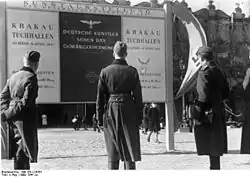 Artyści, tacy jak malarze i rzeźbiarze, byli zmuszani do rejestracji w urzędzie Generalnej Guberni, a ich twórczość była generalnie tolerowana przez podziemie, z wyjątkiem dzieł i twórców powielających niemiecką propagandę[10]. Zamknięte muzea zostały zastąpione przez tymczasowe wystawy popularyzujące nazistowską propagandę[10].