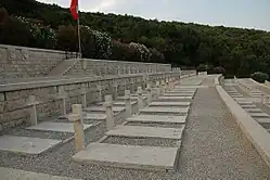 - ↑ Zgodnie z przeprowadzonym przez autora strony internetowej , w dniu 18 maja 2009 r. spisem z natury i zamieszczoną na stronie dokumentacją fotograficzną, na cmentarzu znajdują się 1043 groby – 1038 grobów żołnierskich wykonanych do otwarcia cmentarza w dniu 01.09.1945 oraz 5 grobów wykonanych już po otwarciu cmentarza w okresie od roku 1965 do roku 2011 w tym 2 groby symboliczne. W grobach tych spoczywa 1052 zidentyfikowanych z imienia i nazwiska oraz 23 niezidentyfikowanych żołnierzy 2 Korpusu. Razem 1075 żołnierzy – pochówki do 01.09.1945 r. Do liczby tej należy dodać 3 pochówki specjalne – biskupa polowego Józefa Feliksa Gawliny (pochówek 08.04.1965) w alei głównej oraz generała Władysława Andersa (pochówek 23.05.1970) i jego żony Ireny Anders (pochówek 21.05.2011) na plateau powyżej znicza którzy w ostatniej woli zażyczyli sobie spocząć na tym cmentarzu, a także 2 groby symboliczne – grób generała Bolesława Ducha, którego urna z prochami spoczywa pod pomnikiem 3 Dywizji Strzelców Karpackich na wzgórzu 593 i symboliczny grób kapitana Adolfa Dziekiewicza – taras 9 sektor B, pochowanego na cmentarzu w Detroit. Spopielone szczątki generała Klemensa Rudnickiego zostały rozsypane na wzgórzu 575 koło Pomnika Krzyża 5 Dywizji Kresowej.