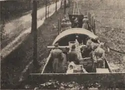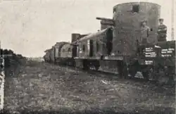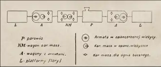 - ↑ Pociąg „czołgowy” zamiast wagonów pancernych miał odkryte platformy, na których ustawiano czołgi[38].