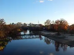 Nad przepływającą miejscowość rzeką Wkrą znajduje się most kolejowy.