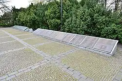 - płyty umieszczonej w przejściu podziemnym pod Wisłostradą (po stronie wschodniej), przedstawiającej różne rodzaje współdziałania powstańców i żołnierzy Wojska Polskiego na Czerniakowie we wrześniu 1944[2],