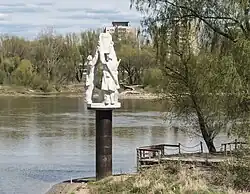 - żelbetowego słupa wbitego w dno rzeki, przy wejściu do Portu Czerniakowskiego. Na słupie znajdują się postacie trzech żołnierzy wbijających pal (w 2019 ta część pomnika została poddana renowacji)[3].