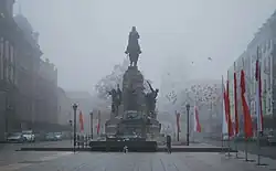 Postać króla Władysława Jagiełły na koniu wieńcząca pomnik