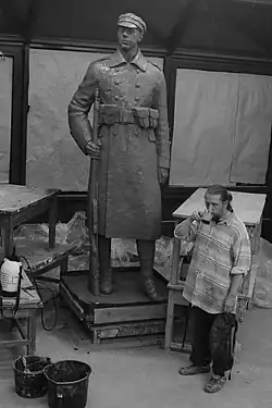 Autorem rzeźby jest Marcin Mielczarek. Przestawia ona młodego legionistę z maciejówką na głowie oraz odzianego w szynel i trzymającego karabin. Została wykonana z brązu, natomiast postument pod nią z granitu[2].