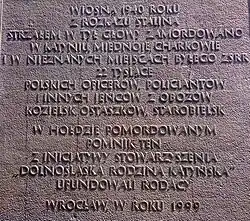 - ↑ Pomnik Ofiar Zbrodni Katyńskiej. Wrocław – wirtualne zwiedzanie miasta. [dostęp 2010-12-10]. [zarchiwizowane z tego adresu (2010-01-17)]. (pol.).