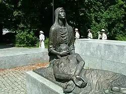 - ↑ Z tyłu pomnika znajdują się także cztery tablice z napisami w językach: angielskim, francuskim, niemieckim i rosyjskim.