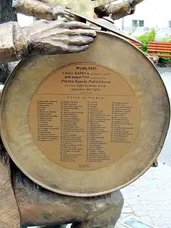 Pomnik autorstwa rzeźbiarza Andrzeja Renesa składa się z pięciu postaci: skrzypka, akordeonisty, gitarzysty, bandżolisty i bębniarza. Został odsłonięty 17 września 2006 roku. Uroczystość odsłonięcia pomnika uświetnił jego pomysłodawca oraz występ autentycznych kapel podwórkowych: Kapeli Praskiej, Różyc Orchestra i wykonująca folklor wiejski Cepelia Kurpianka – kapela kurpiowska z Kadzidła.