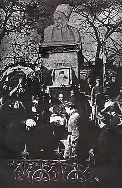 W 1914 r. po zamachu na Stołypina, władze zakazały obchodów rocznicy urodzin Tarasa Szewczenki[19] oraz wstrzymały zgodę na budowę pomnika, powołując się na antycerkiewne i antypaństwowe brzmienie utworów poety. Pieniądze zebrane na wzniesienie pomnika zostały skonfiskowane i wydane na inne cele.
