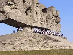 Główna cześć pomnika, tzw. Brama, jest betonowym odlewem o wymiarach 10,8 × 35 x 7,6 metrów. Na dwóch żelbetowych pylonach oparta jest konstrukcja rzeźbiarska – szkielet, na który narzucono glinę i gips, z których uformowano rzeźbę pokrytą następnie betonem. Brama znajduje się na ziemnym kopcu obłożonym granitem i wylanym betonem. Z trzech stron zbocza kopca mają formę stromych schodów. Od południa schody te prowadzą do II odcinka Drogi Hołdu i Pamięci.