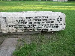 אין אנדענק פון די קרבנות פון דעם היטלער רעזשים וועטענס ביינער זיינער ג[ע]בראכט געווארן צו קבורה אויפן דאזיקן פלאץ