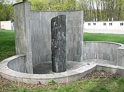 Od bramy, stopniowo w dół, kamienna alejka w formie wydłużonych schodów prowadzi do pomnika. Monument ten ma postać wysokiego słupa o prawie trzymetrowym obwodzie. Obłożony jest wąskimi płytami z szarego granitu i posadowiony na środku głębokiego, owalnego zagłębienia ze ścianami wyłożonymi jasnym piaskowcem[2].