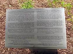 W pobliżu pomnika znajduje się tablica, na której w języku niemieckim i angielskim wyjaśniono historyczne tło i cel powstania pomnika: