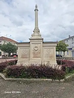 Pomnik poległych został wykonany w 1922 roku przez rzeźbiarza Jeana-Baptiste’a Picauda pochodzącego z Roanne. Pomnik ma dwie cechy szczególne: zawiera emaliowane fotografie poległych oraz długi tekst pacyfistyczny, wygrawerowany w 1928 r. z inicjatywy burmistrza Pierre’a Monota. Tekst ten piętnuje wojnę i jej okropności: „Przeklęta niech będzie wojna i jej autorzy”. Pomnik, długo nie był dobrze przyjmowany przez mieszkańców, został oficjalnie odsłonięty dopiero w 1947 roku[1].