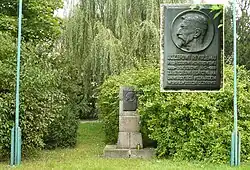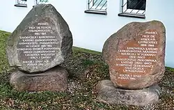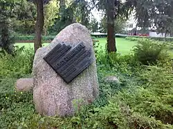 Głaz pamiątkowy z tablicą. Stoi pomiędzy Collegium Maximum, a Kolegium Gawęckiego, przy ul. Wołyńskiej. |