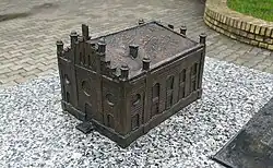 - Makieta zamku w Prudniku przy wejściu na klatkę schodową do Wieży Woka została wykonana z brązu[37] w 2018 z inicjatywy Muzeum Ziemi Prudnickiej, według projektu Małgorzaty Chorowskiej i Anny Chodkowskiej. Jest to rekonstrukcja stanu zamku z przełomu średniowiecza i wczesnej nowożytności. Gotycki zamek spłonął w 1806, jedyną pozostałością po nim jest tzw. Wieża Woka. Makieta była wzorowana głównie na XVIII-wiecznym rysunku prudnickiego zamku autorstwa Friedricha Bernharda Wernera[38]. Została odsłonięta 1 lipca 2018 podczas Jarmarku Historycznego[39].