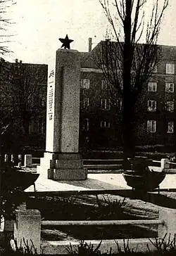 - Pomnik poległych w I wojnie światowej w kwartale przylegającym do południowo-wschodniego narożnika cmentarza komunalnego. Ma formę krzyża[11].