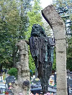 - Pomnik Martyrologii Więźniów Oświęcimskich na cmentarzu komunalnym, wykonany przez Mariana Nowaka[18] w 1968 z materiałów pochodzących z rozbiórki kościoła ewangelickiego w Prudniku[19]. Pomnik powstał w miejscu zbiorowej mogiły ofiar marszu śmierci ze stycznia 1945. Osoby pochowane w tym miejscu zostały zabite lub zmarły z wycieńczenia w okolicy Prudnika podczas ewakuacji więźniów obozu koncentracyjnego w Auschwitz-Birkenau. Przedstawia postać spalonego człowieka (wykonaną w metalu) przy słupie obozowego ogrodzenia[20]. Inskrypcja pod pomnikiem głosiła: „Tu spoczywają więźniowie obozu koncentracyjnego w Oświęcimiu wielu narodowości i więźniowie polityczni z Prudnika, bestialsko pomordowani przez oprawców faszystowskich podczas ewakuacji obozu w styczniu 1945 r.”[19]. W 2018 władze gminy Prudnik wystąpiły do Instytutu Pamięci Narodowej o zmianę treści napisu na „Pamięci spoczywających tutaj 57 cywilnych ofiar – więźniów różnej narodowości zamordowanych przez Niemców w trakcie ewakuacji obozu KL Auschwitz w styczniu 1945 r.”[21].