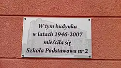 - Na ścianie Regionalnego Inkubatora Przedsiębiorczości przy placu Zamkowym 2 umieszczono tablicę upamiętniającą istnienie w tym budynku w latach 1946–2007 Szkoły Podstawowej nr 2.