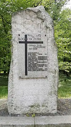 - ↑ Zniszczyli pomnik ofiar na cmentarzu [online], Policja.pl [dostęp 2023-11-21] (pol.).