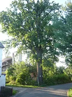 | 11 | Sobota | Dąb szypułkowy Quercus robur o obwodzie 450 cm (1992 r.) | w widłach rzeki Bóbr i kanału doprowadzającego wodę do młyna w Dębowym Gaju – około 80 m od tamy na Bobrze | 1 | |