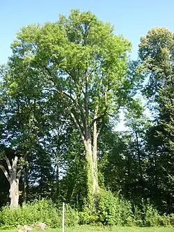 | 19 | Skała | Tulipanowiec amerykański Liriodendron tulipifera o obwodzie 400 cm (1991 r.) | Skała, w zabytkowym parku pałacowym, w centralnej części (na obrzeżu polany) | 1 | |