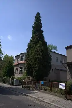| 18 | Żywotnik zachodni Thuja occidentalis o obwodzie 128 + 55 (dwupniowy) | Ul. Ulanowskiego 21 | 1 | Uchwała Nr LXXIII/469/93 Rady Miejskiej Wrocławia z dnia 27 listopada 1993 r. | ![]() |