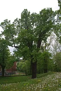 | 51 | Dąb szypułkowy Quercus robur o obwodzie 455 cm | Park Leśnicki, staw przy zamku | 1 | Uchwała Nr XXXII/1020/01 Rady Miejskiej Wrocławia z dnia 19 kwietnia 2001 r.Biuletyn Urzędowy RMNr 6 poz.107 z dnia 7 maja 2001 r. | ![]() |