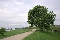 | 5 | Aleja dębowa Dąb szypułkowy Quercus robur o obwodzie 317 – 520 cm | Na skarpie wału przeciwpowodziowego od strony Odry, naprzeciw ZOO | 10 | Decyzja 4/53 z dnia 16 lutego 1953 r. | ![]() |