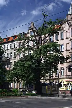 | 96 | Dąb szypułkowy Quercus robur o obwodzie 378 cm | Ul. Centralna 26 | 1 | Uchwała Nr XXIX/1005/08 Rady Miejskiej Wrocławia z dnia 30 grudnia 2008 r. | ![]() |