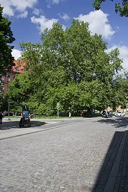 | 88 | Platan klonolistny Platanus x hispanica Acerifolia o obwodzie 527 cm | Ul. Podwale 51-56 | 1 | Uchwała Nr XXV/2096/04 Rady Miejskiej Wrocławia z dnia 8 lipca 2004 r.Dz. Urz. Woj. Doln.z dnia 27 sierpnia 2004 r.Nr 160, poz. 2782 | ![]() |